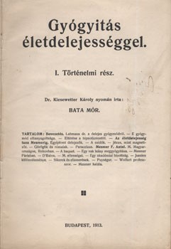 52. tétel:Bata Mór: Gyógyítás életdelejességgel. 1-2. kötet (egybekötve). I. Történelmi rész. Dr. Kiesewetter Károly nyomán írta: --. II. Elméleti és gyakorlati rész. Összeáll. Tordai Vilmos.