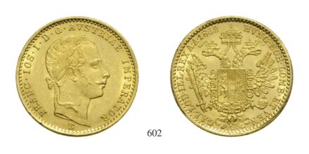 Kikiáltási ár: 0 FtFerenc József (1848-1916), Dukat , Au , 1866, Bécs /Wien/ , Av: FRANC•IOS•I•D•G•AVSTRIAE IMPERATOR idôsebb portré és oldalszakáll /älteres Gesicht und Backenbart/ alul verdejegy /unten Mzz./ A , Rv: HVNG•BOH•LOMB•ET VEN• - GAL•LOD•ILL •REX A•A•1866 , 3,50