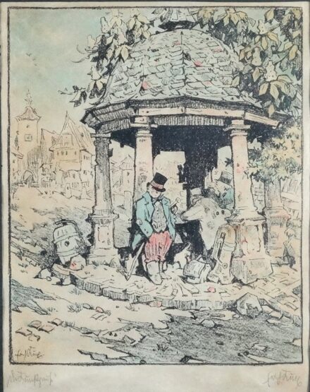 Kikiáltási ár: 8 000 Ftrézkarc, akvarellel színezve, 30 x 23 cm