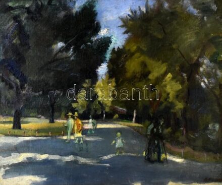Sz. Csapó Márton (1889-?): Séta a Ligetben. Olaj, vászon. Jelzett. Fa keretben. 60×71 cm<a href="https://www.darabanth.com/hu/gyorsarveres/410/kategoriak~Festmenyek-es-grafikak/Festmenyek-es-grafikak~500001/Sz-Csapo-Marton-1889-Seta-a-Ligetben-Olaj-