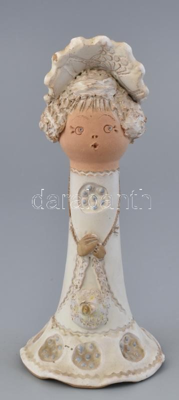 11011. tétel:Győrbíró Enikő (1932-1999): Kislány gyertyatartóval, festett kerámia, jelzett, hibátlan, m:20cm.