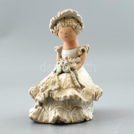 Győrbíró Enikő (1932-1999): Hölgy kalapban, színes kerámia, hibátlan, jelzett, m: 23cm.<a href="https://www.darabanth.com/hu/gyorsarveres/410/kategoriak~Porcelan-keramia-uveg/Keramiak~500005/Gyorbiro-Eniko-1932-1999-Holgy-kalapban-szines-keramia-hib