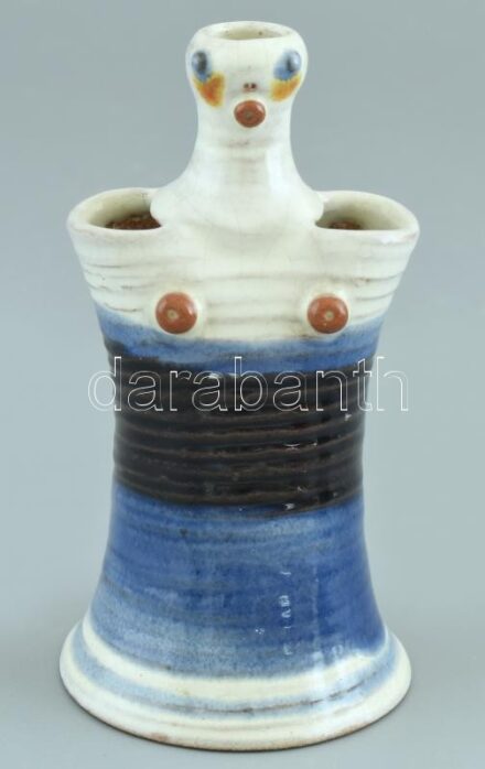 Király Károly: retró kiöntő, színes mázakkal festett kerámia, jelzés nélkül, hibátlan, m: 12 cm<a href="https://www.darabanth.com/hu/gyorsarveres/410/kategoriak~Porcelan-keramia-uveg/Keramiak~500005/Kiraly-Karoly-retro-kionto-szines-mazakkal-festett