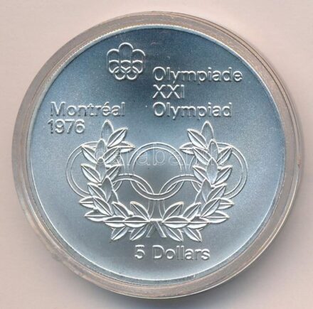 31410. tétel:Kanada 1974. 5$ Ag 'Montreali olimpia' kapszulában (24,3g/0.925/38mm) T:BU Canada 1974. 5 Dollars Ag 'Montreal Olympic games' in capsule (24,3g/0.925/38mm) C:BU Krause KM#89<a href="https://www.darabanth.com/hu/gyorsarveres/411/kategoriak~Numizmat