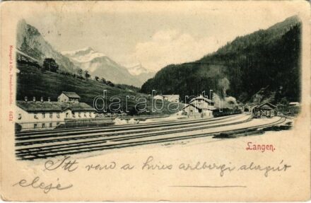 1901 Langen am Arlberg, Bahnhof / railway station, train, locomotive (EK)<a href="https://www.darabanth.com/hu/gyorsarveres/412/kategoriak~Kepeslapok/Ausztria~2000018/1901-Langen-am-Arlberg-Bahnhof-railway-station-train-locomotive-EK~II2569022/?utm_