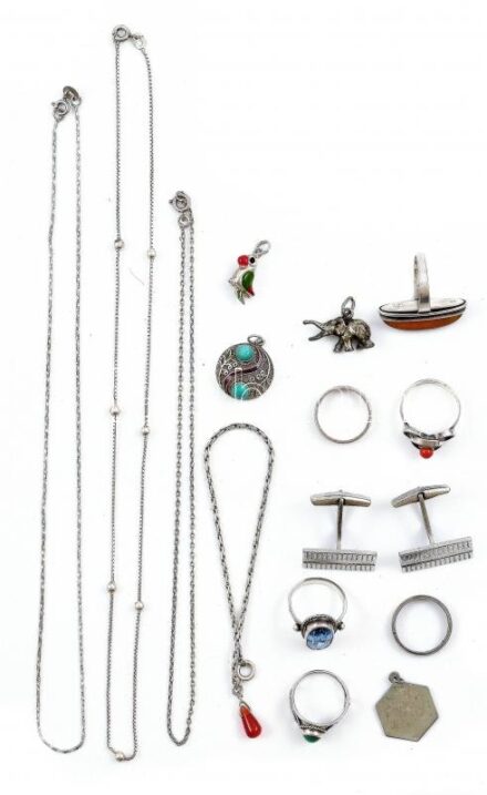 Kikiáltási ár: 22 000 FtEzüst (Ag) vegyes ékszerek, jelzettek, bruttó: 45g<a href="https://www.darabanth.com/hu/gyorsarveres/419/kategoriak~Nemesfem-disztargyak-ekszerek-dragakovek/Nemesfem-disztargyak-ekszerek-dragakovek~500034/Ezust-Ag-vegyes-ekszerek-jelzettek-brutto-45
