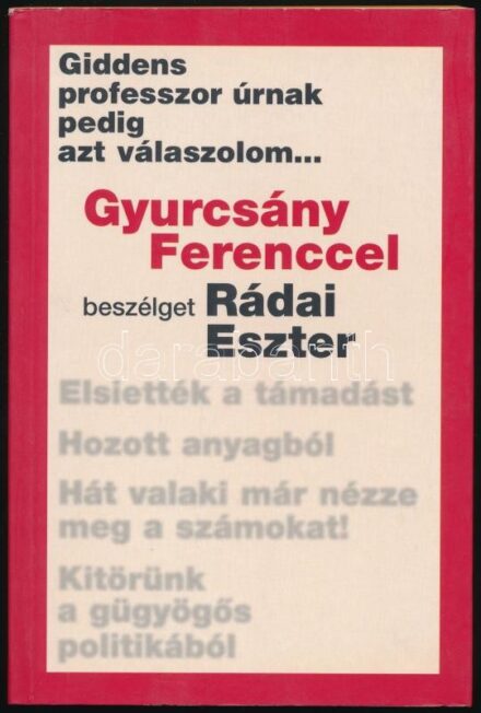 17372. tétel:Giddens professzor úrnak pedig azt válaszolom... Gyurcsány Ferenccel beszélget Rádai Eszter. Szerk.: Bognár Róbert. Bp., 2006, Mozgó Világ. Kiadói papírkötés. Gyurcsány Ferenc (1961- ) politikus, volt miniszterelnök által aláírt példány.<a href="htt