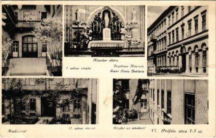 20555. tétel:Budapest VI. Irgalmas Nővérek Szent Teréz Intézete, Kápolna oltára, I. udvar részlet, II. udvar részlet, részlet az iskoláról. Próféta utca 1-3. (EB)<a href="https://www.darabanth.com/hu/gyorsarveres/420/kategoriak~Kepeslapok/Magyarorszag~1000004/Bu