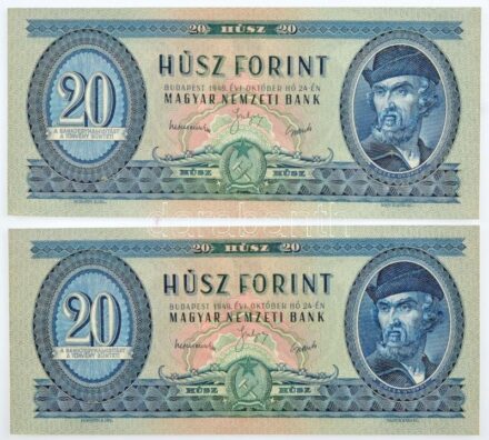 30491. tétel:1949. 20Ft (2x) sorszámkövetők ‘C 573 022284 – C 573 022285’ T:I,I- Adamo F10