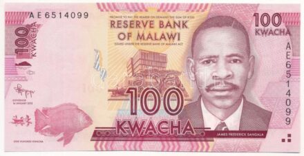 32174. tétel:Malawi 2012. 100K 'AE 6514071' T:I- kissé hullámos papír Malawi 2012. 100 Kwacha 'AE 6514071' C:AU slightly wavy paper Krause P#59<a href="https://www.darabanth.com/hu/gyorsarveres/420/kategoriak~Numizmatika/Kulfoldi-bankjegyek~2000015/Malawi-2012-1