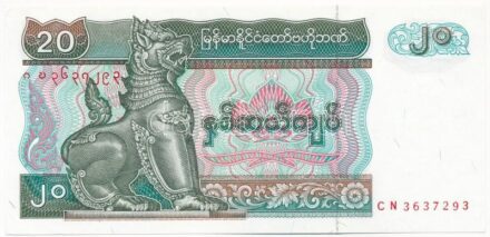 32190. tétel:Mianmar DN (1994) 20K ‘CN 3637293’ T:I- Myanmar ND (1994) 20 Kyats ‘CN 3637293’ C:AU Krause P#72