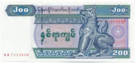 32196. tétel:Mianmar DN (2004) 200K 'QB 7333956' T:III szép papír Myanmar ND (2004) 200 Kyats 'QB 7333956' C:F nice paper Krause P#78<a href="https://www.darabanth.com/hu/gyorsarveres/420/kategoriak~Numizmatika/Kulfoldi-bankjegyek~2000015/Mianmar-DN-2004-200K-QB