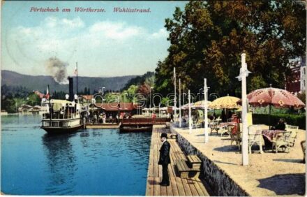 1910 Pörtschach am Wörthersee, Wahlisstrand / port, steamship<a href="https://www.darabanth.com/hu/gyorsarveres/422/kategoriak~Kepeslapok/Ausztria~1500047/1910-Portschach-am-Worthersee-Wahlisstrand-port-steamship~II2679937/?utm_source=affiliate&utm_