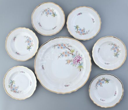 11241. tétel:Hollóházi cseresznyevirág mintás süteményes készlet, matricás, jelzett, hibátlan.