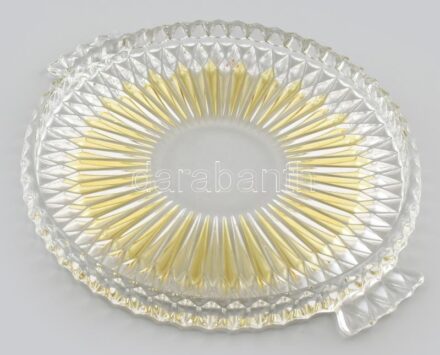 11409. tétel:Sárga ólomkristály kínáló, közepében lóhere motívum, egy apró lepattanás, m: 9 cm, d: 20 cm