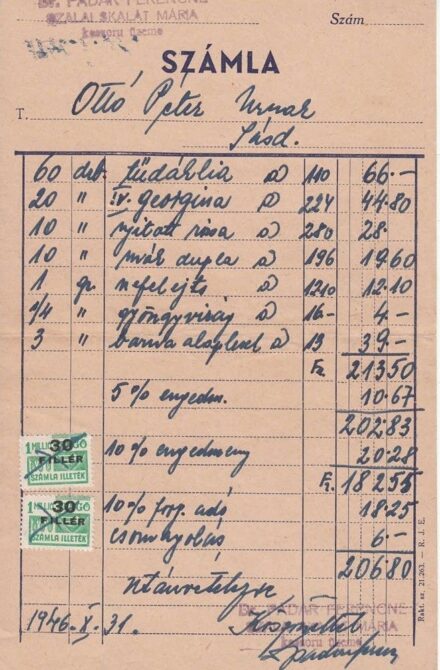 Dr. Pádár Ferencné /Szalai Skalát Mária/ fejléces számlája, Hőgyész
