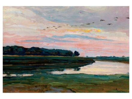 Kikiáltási ár: 650 000 FtEndre Béla Szeged, 1870 – Mártély, 1928 Alkonyati tájkép Olaj, vászon 63 × 92 cm Jelezve jobbra lent: Endre