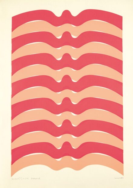 Kikiáltási ár: 20 000 000 FtSzitanyomat, papír, 86,5 x 61 cm, Jelezve jobbra lent: Keserü 1976; Jelezve balra lent: Variáció (S) c. (H) Akkord
