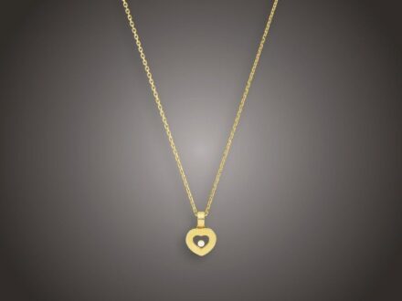 154. tétel:Lánc függővel Chopard Arany 750, vékony anker láncon szívforma függő, 1 briliáns cca. 0,05 ct (MWVs) ékítéssel, Happy Diamonds kollekcióból, modellszám: 792897-3163438, 7,3 g, hossz: 40 cm