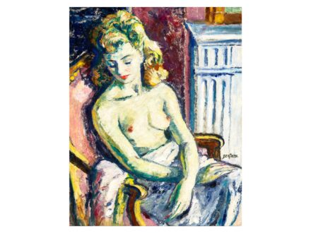 Kikiáltási ár: 320 000 FtBertalan Albert (Jászberény, 1899 - Párizs, 1957) Műteremben Olaj, vászon 93 x 73 cm Jelezve jobbra középen: Bertalan
