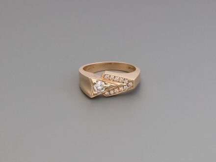 Kikiáltási ár: 150 000 FtArany 750, 1 nagyobb régi csiszolású briliáns cca. 0,65 ct (R2CSi) ékítéssel, 2,6 g, átmérő: 17,0 mm, alakított