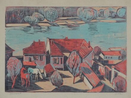 Kikiáltási ár: 60 000 Ftszínes linómetszet (30 példány) jjl., 33,5 x 29 cm