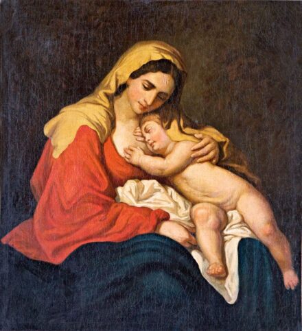 56. tétel:56. tétel, Osztrák festő, 19. sz. eleje: Mária a kisdeddel és angyalokkal