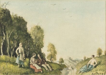 Kikiáltási ár: 120 000 FtRudnay GyulaSzabadbanakvarell, papírJelezve balra lent:1945Jelezve jobbra lent:Rudnay Gy.