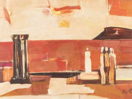 Kikiáltási ár: 50 000 FtIstókovits Kálmán Siklós, 1898 - Budapest, 1990 Tájkép romokkal és alakokkal (1969) Olaj, karton 35 × 50 cm Jelezve balra lent: Istókovits K.1969