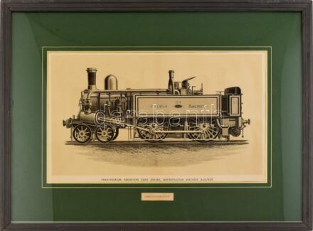 10739. tétel:Mozdony (Four coupled passenger tank engine, Metropolitan District Railway). Fametszet, papír, jelzés nélkül. A The Engineer folóirat melléklete, 1889. Üvegezett fa keretben. 28x50 cm<a href="https://www.darabanth.com/hu/gyorsarveres/416/kategoriak~