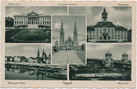 22000. tétel:1943 Szigetvár, Rákóczi utca, vár, Római katolikus templom, Városháza, Hősök szobra, Kossuth tér