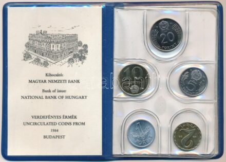 Kikiáltási ár: 2 200 Ft1984. 2f-20Ft (10xklf) forgalmi sor kék műbőrtokban T:1<a href="https://www.darabanth.com/hu/gyorsarveres/423/kategoriak~Numizmatika/Magyar-es-magyar-verdejelu-fem-es-ezustpenzek~6000008/1984-2f-20Ft-10xklf-forgalmi-sor-kek-mubortokban-T1~II2686973/