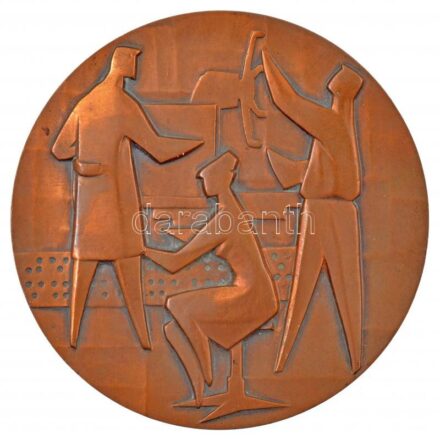 31099. tétel:Vincze Dénes (1914-1972) DN Szocreál tudomány témájú bronz plakett (78mm) + műgyantás jelvény, megegyező motívummal (20x20mm) T:1-<a href="https://www.darabanth.com/hu/gyorsarveres/422/kategoriak~Numizmatika/Magyar-emlekveretek-plakettek~2000008/Vin