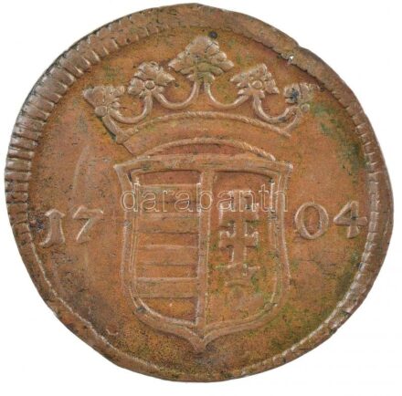 30523. tétel:1706. X Poltura Cu 'II. Rákóczi Ferenc' (6,58g) T:3,3- patina, lyuk, kissé megrepedve Hungary 1706. X Poltura Cu 'Francis II Rákóczi' (6,58g) C:F,VG patina, hole, slightly cracked Huszár:1535., Unger II.:1133.a<a href="https://www.darabanth.com/hu/g