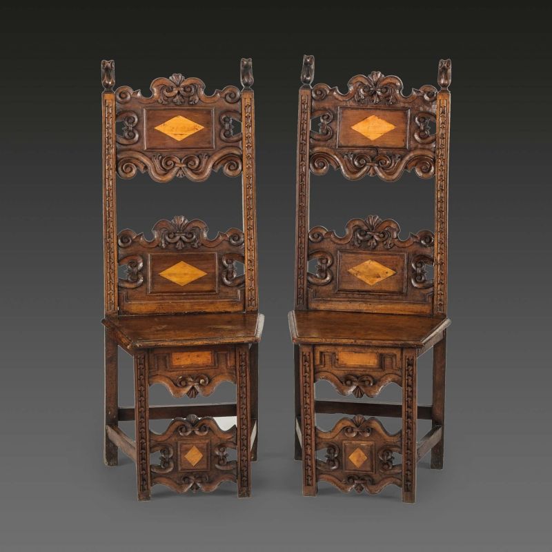 Kikiáltási ár: 220 000 FtJacob és Joseph Kohn, Bécs, 1900 körül, feketére pácolt, gőzölt bükkfa, a szék kávájában jelzett: "Joseph Kohn Wien 715" címke és beégetett: "J. und J. Kohn Austria", bronz papucsokkal, sérült 93,5*38*50 cm
