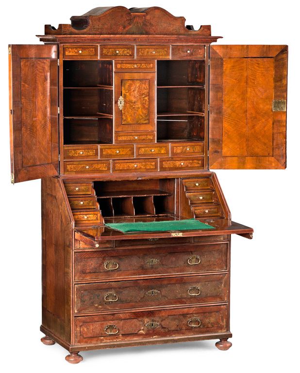 Kikiáltási ár: 28 000 Ftmagyar, 20. sz. első fele, fenyőfa alapon diófa borítással, sérült 164*119*48,5 cm