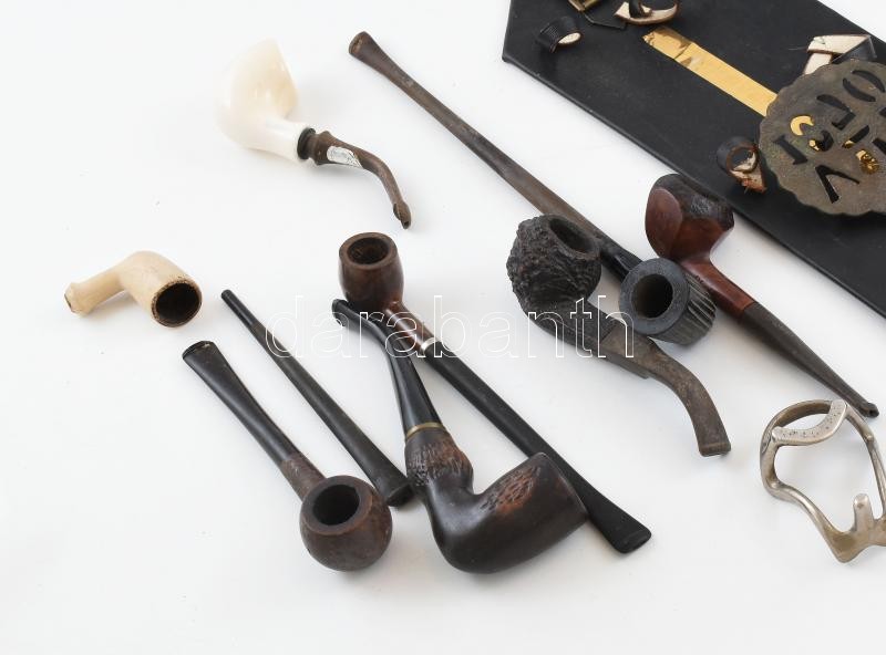 11 db klf pipa: győkér, csont, jó állapotban, három pipatartóval<a href="https://www.darabanth.com/hu/gyorsarveres/415/kategoriak~Mutargy-papirregiseg-egyeb/Bolhapiac~500012/11-db-klf-pipa-gyoker-csont-jo-allapotban-harom-pipatartoval~II2601918/?utm