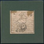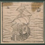 1598 Hajó fametszető képe paszpartuban, Megjelent: Münster, Sebastian: Cosmographey…Basel, 1598. Henricpetri. 8,5×8 cm<a href="https://www.darabanth.com/hu/gyorsarveres/424/kategoriak~Festmenyek-es-grafikak/Metszetek~500004/1598-Hajo-fametszeto-ke