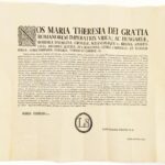 1768 Mária Terézia rendeletének latin nyelvű hirdetménye, hajtva