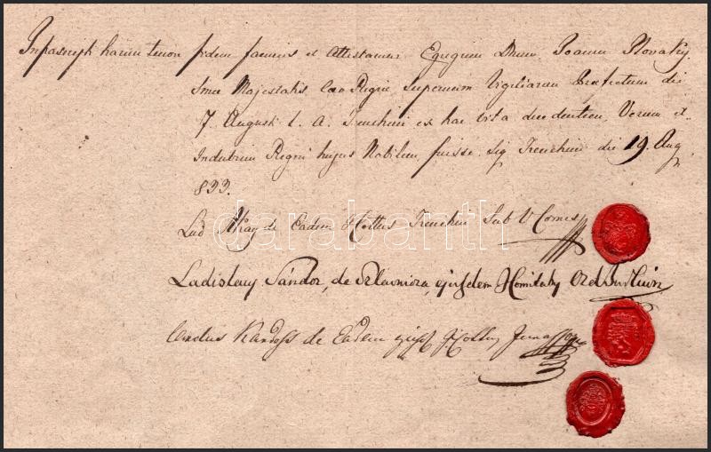 1833 Latin nyelvű kézzel írt dokumentum 3 db viaszpecséttel<a href="https://www.darabanth.com/hu/gyorsarveres/417/kategoriak~Mutargy-papirregiseg-egyeb/Okmanyok~19/1833-Latin-nyelvu-kezzel-irt-dokumentum-3-db-viaszpecsettel~II2627494/?utm_source=aff