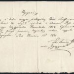 1835 március 15. A budai magyar játékszínház javára ajánlott összeg befizetéséről szóló nyugta Döbrentei Gábor (1785-1851) igazgató, költő, királyi tanácsos, az MTA tagja, a történelem szó megalkotójának autográf