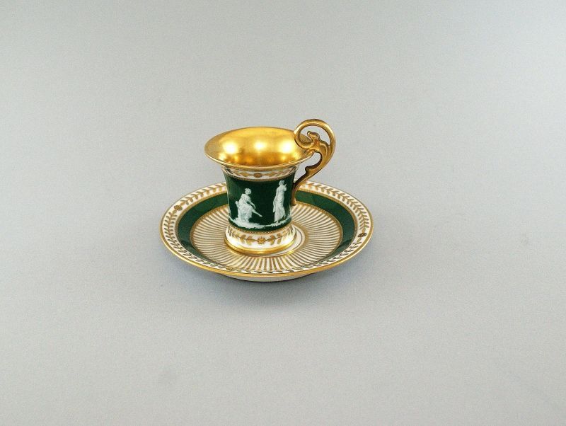 Műtárgy leírás – Porcelán, színes festéssel és aranyozással. Alján jelzett: bélyegzett zöld márkajelzéssel Epiag, Royal, Made in Czechoslovakia. Cseh, Altrohlau, 1920 körül. Csésze M.: 7,5 cm Alj átm.: 12 cm