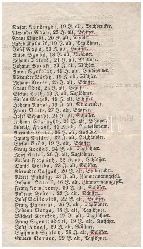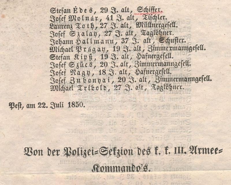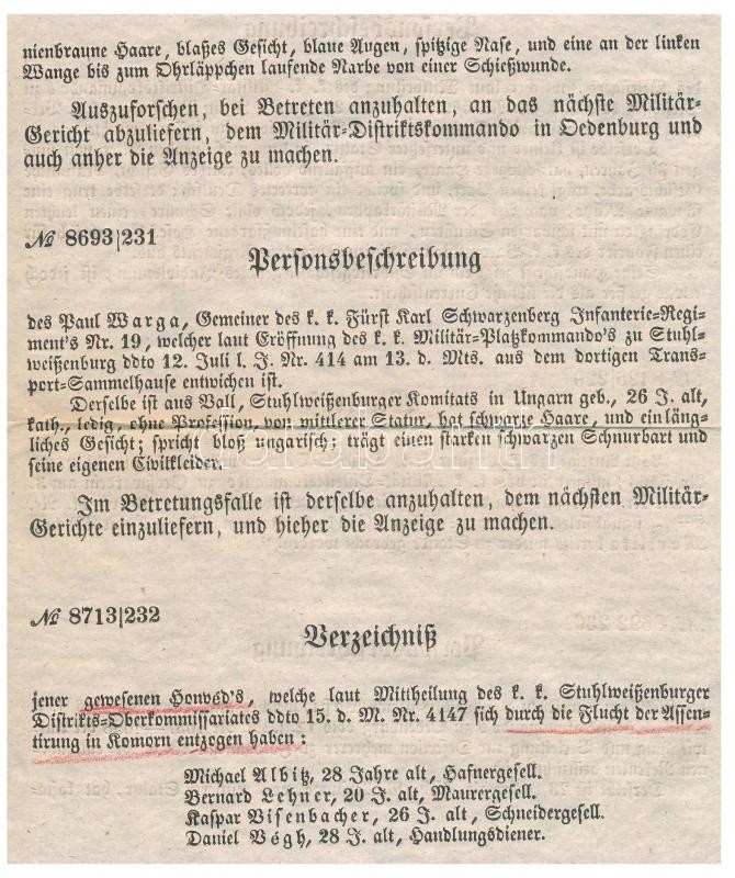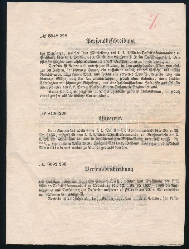 1850 Szabadságharcos honvédokat kőröző levél, személyleírásokkal 4p