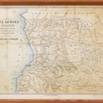 1857 Dél Afrika földképe a déli szél 8-és 15-dik s a keleti hossz 11 és 19-dik fokai között. Készítette Magyar László. Színezett rézmetszet, üvegezett keretben. / Engraved map of South Africa 34×28 cm Üvegezett keretben.