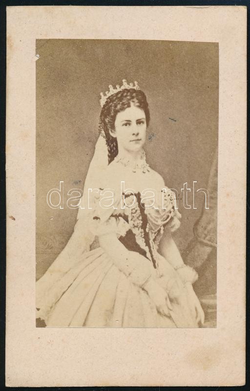 1867 Wittelsbach Erzsébet (Sisi, 1837-1898) magyar királyné, osztrák császárné keményhátú fotója magyar királynői ruhában, koronával, 8×5 cm<a href="https://www.darabanth.com/hu/gyorsarveres/415/kategoriak~Fotomuveszet/Foto~500021/1867-Wittelsbach-E