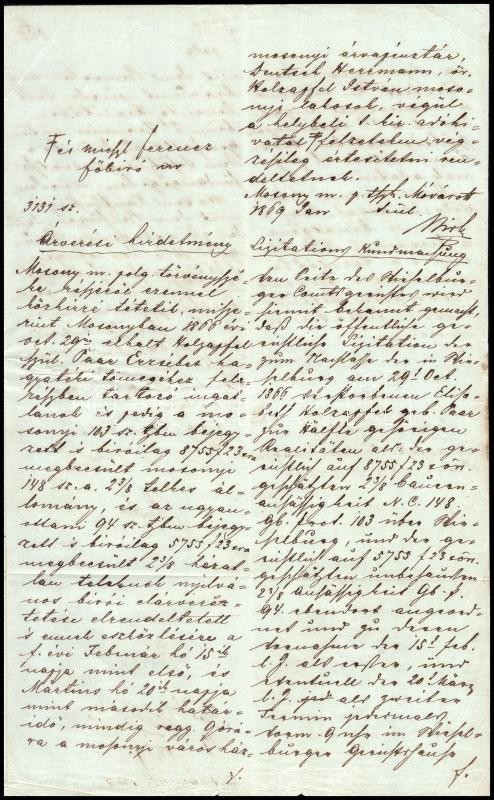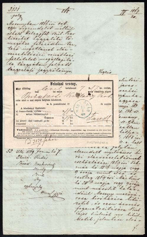 1868 Mosonmagyaróvár, irat hagyaték árverése ügyében + postai feladóvevény