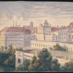 1870 Bécs, kilátás az Albrecht főherceg palota 3. emeletéről a várra, hátoldalon feliratozott akvarell kép, 14,5×17,5 cm<a href="https://www.darabanth.com/hu/nagyaukcio/38/kategoriak~Mutargy-szobor-papirregiseg/Tortenelmi-dokumentumok-keziratok-erde