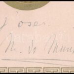 1881. Munkácsy Mihály (1844-1900) Krisztus Pilátus előtt c. képének első bemutatása alkalmából, az ő tiszteletére, Párizsban tartott dísz ebéd menükártyája, a az első oldalon Munkácsy albumin fotójával és autográf soraival ‘A mdm Michelle – – – – si j’ose