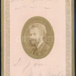 1881. Munkácsy Mihály (1844-1900) Krisztus Pilátus előtt c. képének első bemutatása alkalmából, az ő tiszteletére, Párizsban tartott dísz ebéd menükártyája, a az első oldalon Munkácsy albumin fotójával és autográf soraival ‘A mdm Michelle – – – – si j’ose