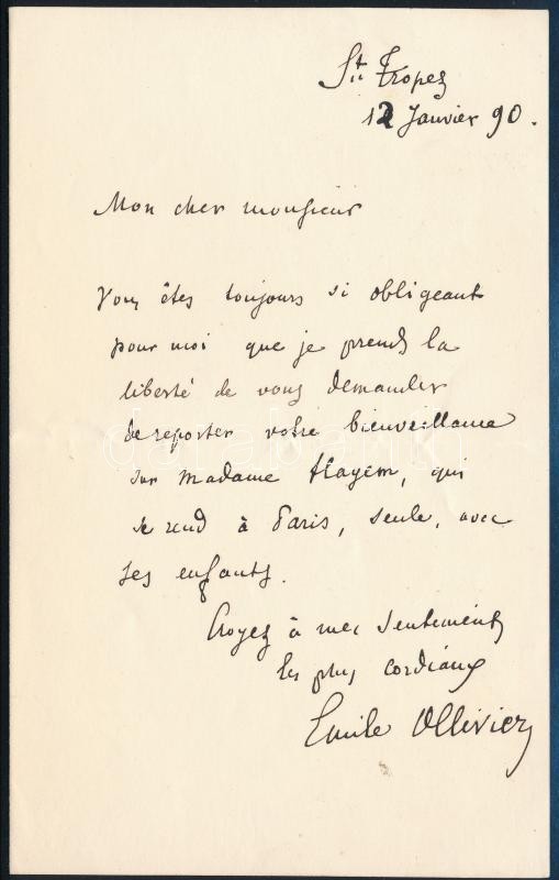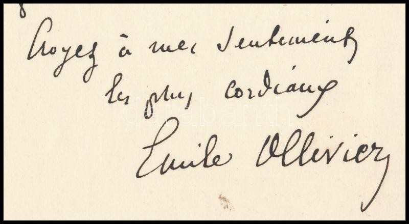 1894 Émile Ollivier (1825-1913) francia miniszterelnök, Liszt Ferenc vejének autográf levele / Autoraph letter of Émile Olivier (1825-1913) prime minister of France and son in law of Franz Liszt on two pages<a href="https://www.darabanth.com/hu/nagy